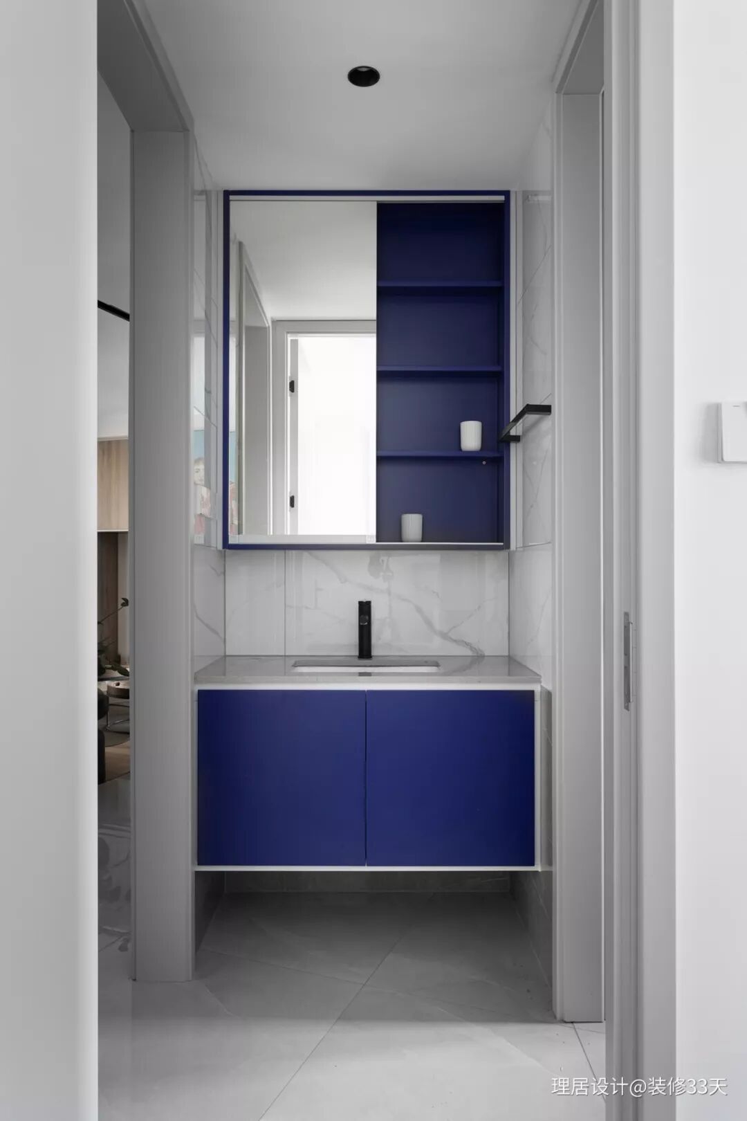 ▲ 卫生间干湿分区,提高使用效率,石纹瓷砖搭配蓝色贯穿各空间,营造清爽感