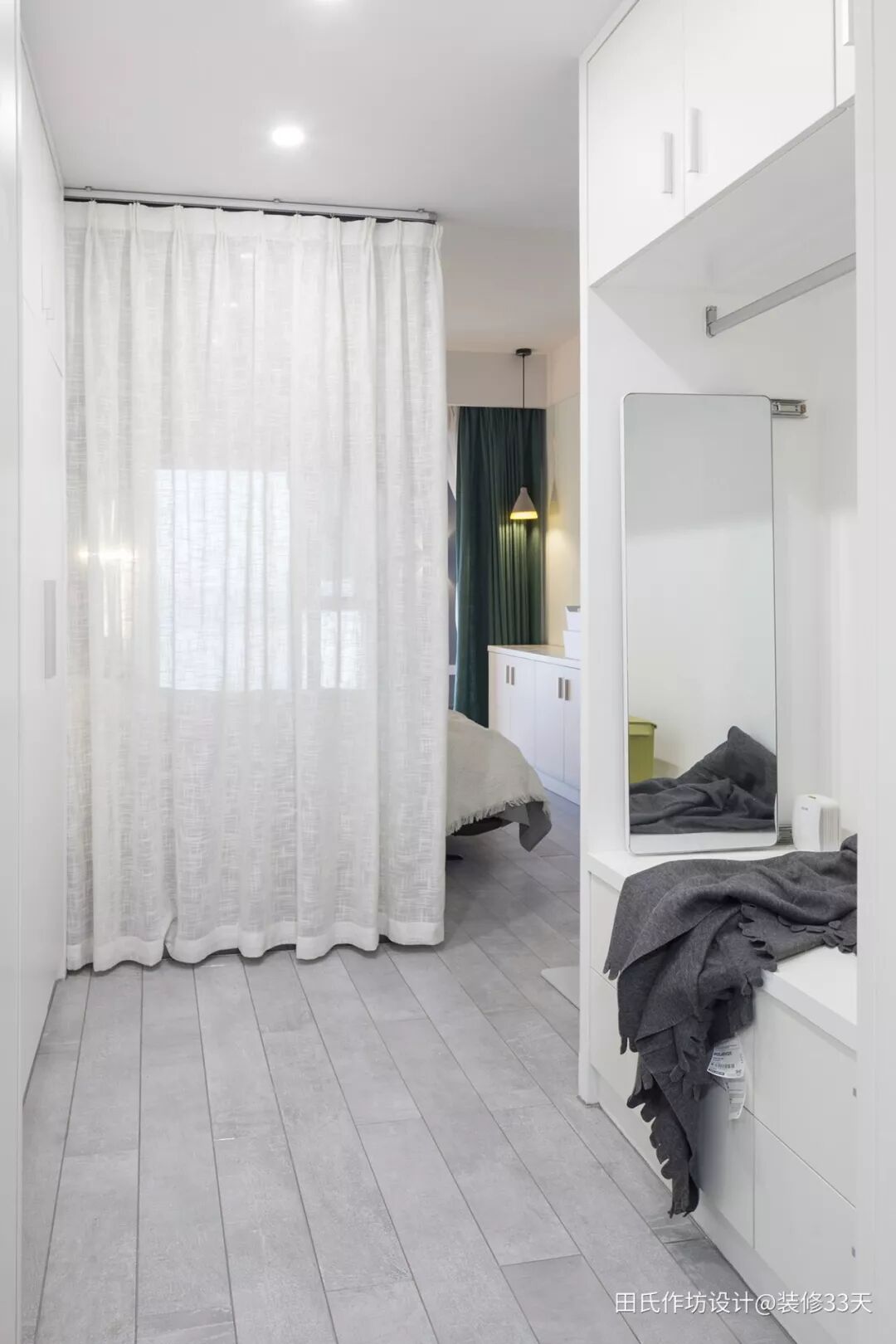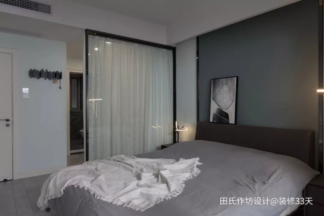 ▲ 主卧延续黑白灰配色,加入墨绿色窗帘,安静沉稳而又不失格调