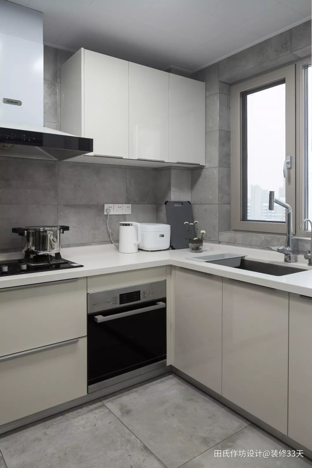 ▲ 中厨区,白色橱柜搭配灰色墙地砖,与室内整体风格保持一致