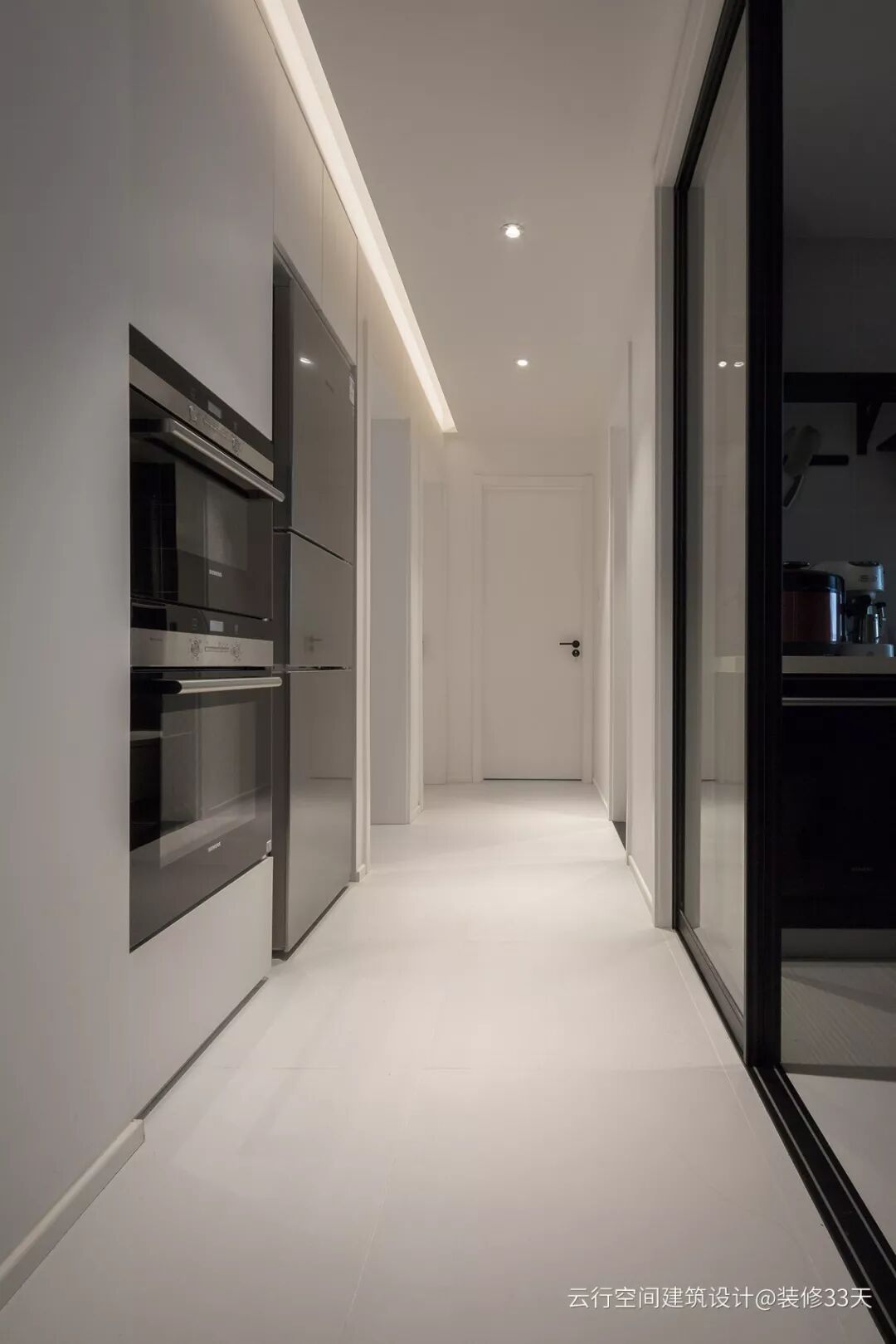 ▲ 利用厨房外部的过道打造通顶橱柜,预留大型家电空间,解放厨房