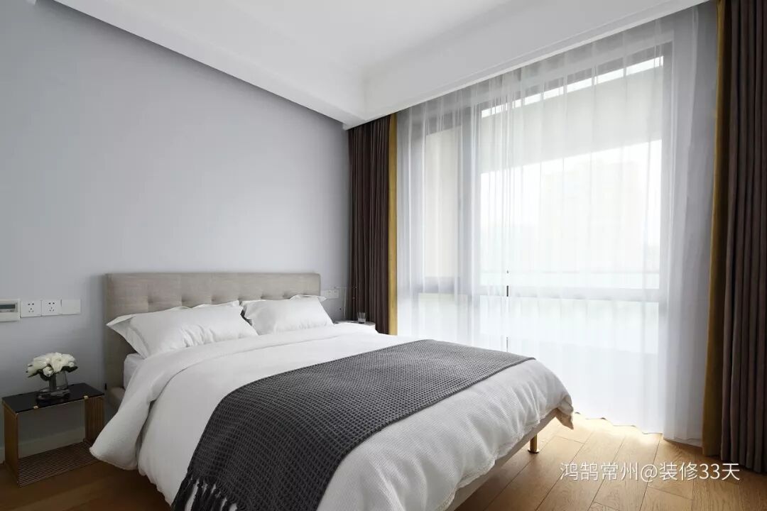 ▲ 客卧是业主准备给父母住的,色彩选择则是运用简约的灰和白