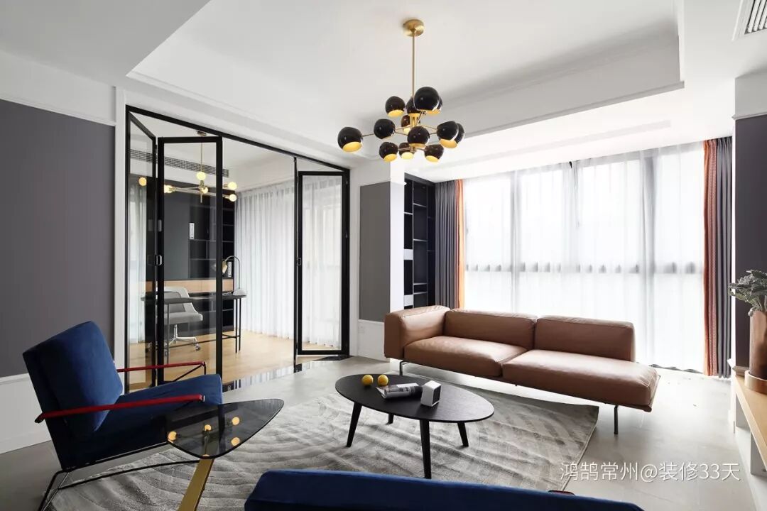 ▲ 书房采用与餐厨区一致的折叠门,打开就可以和客厅互通,让人感觉书房和客厅是一体的,通透敞亮