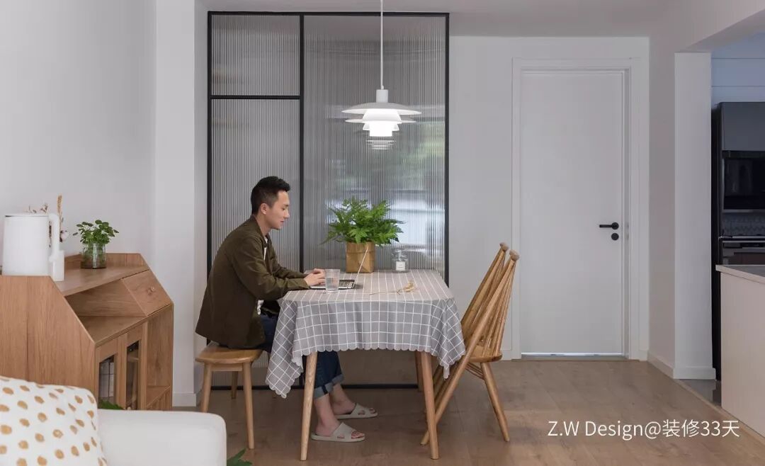 ▲ 设置长虹玻璃隔断,避免入户大门正对餐厅和阳台,缓冲视线又不影响采光