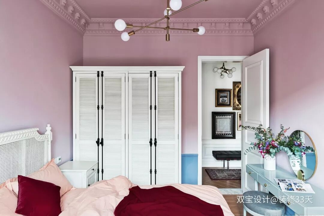 ▲ 粉紫色儿童房,层高3.1m,30公分的石膏线,超高的门,显得空间更高