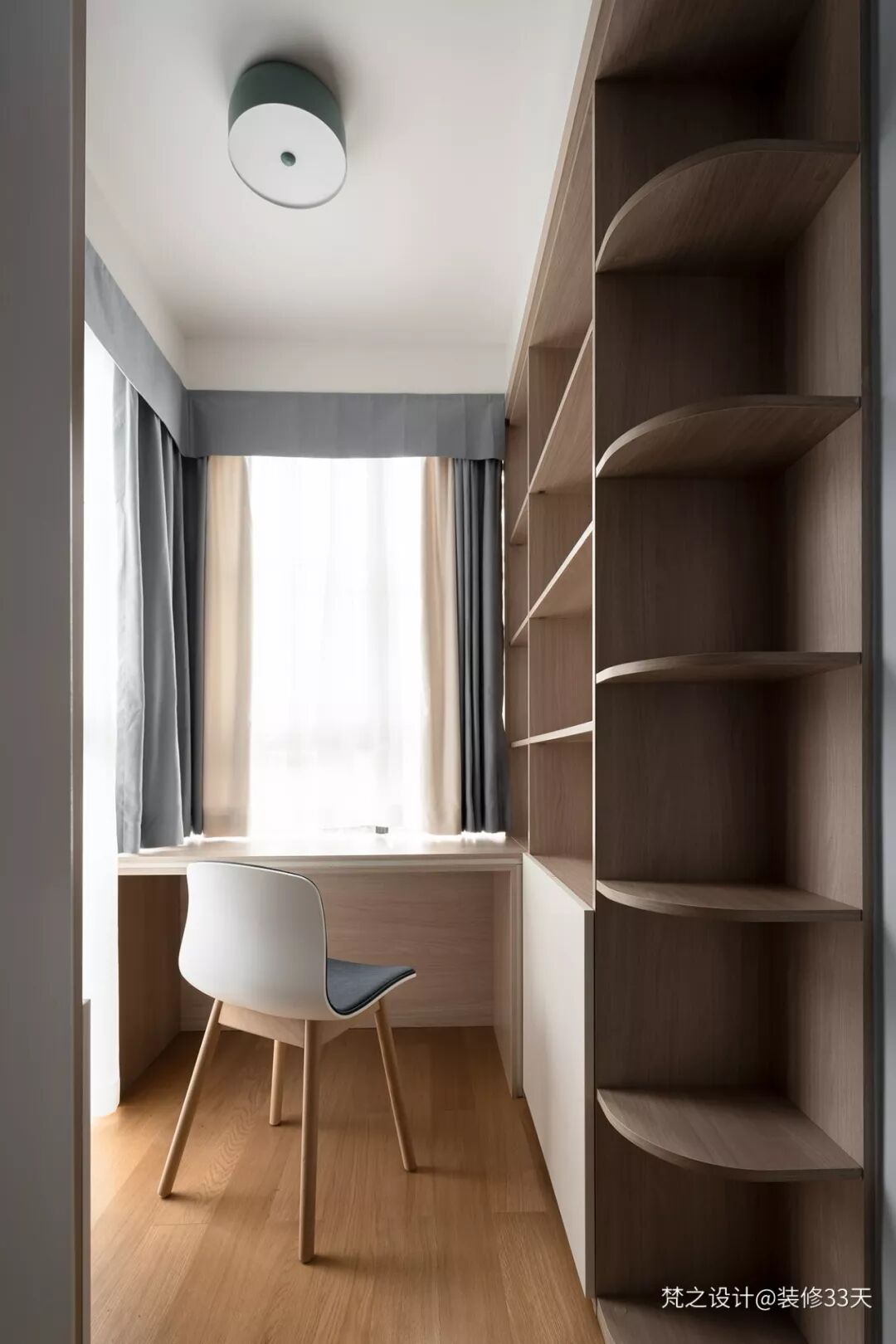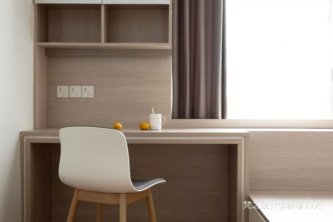 ▲ 榻榻米与书桌一体设计,很好的利用空间,同时保证整体延续性