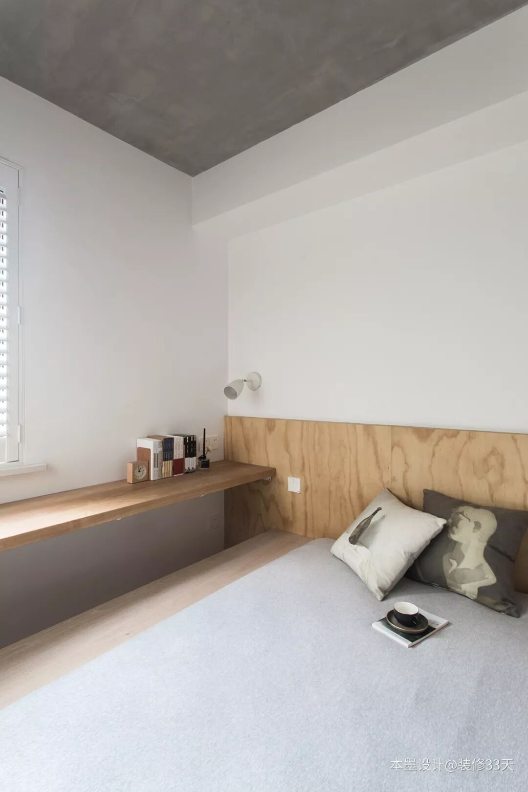 ▲ 木饰面半高床头结合留白墙面做背景,侧墙设计隔板当做书桌