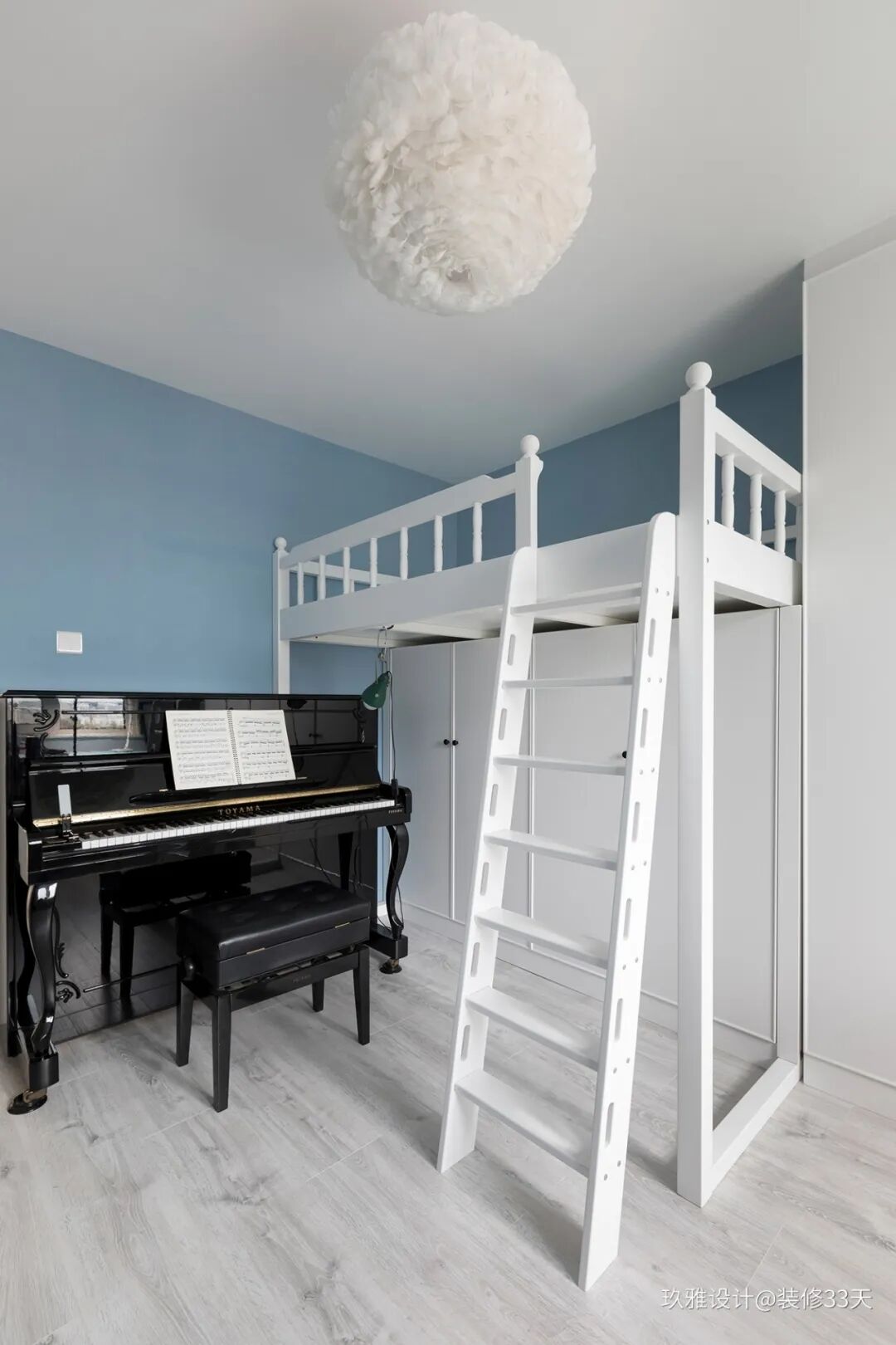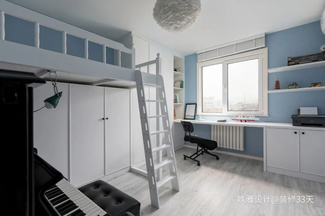 ▲ 高架床下放不仅可以规划出储物空间,还预留位置给钢琴