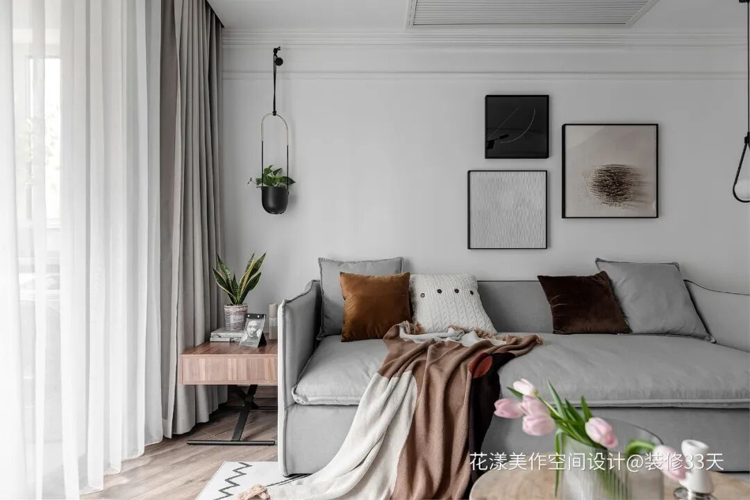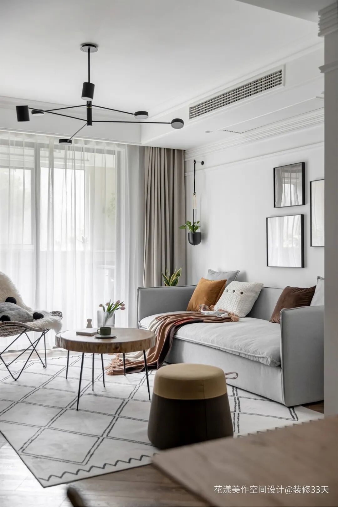 ▲ 客厅的两面背景采用一张一弛的设计手法,整体的调性以现代与北欧混搭为主,清爽、干练又不乏温暖