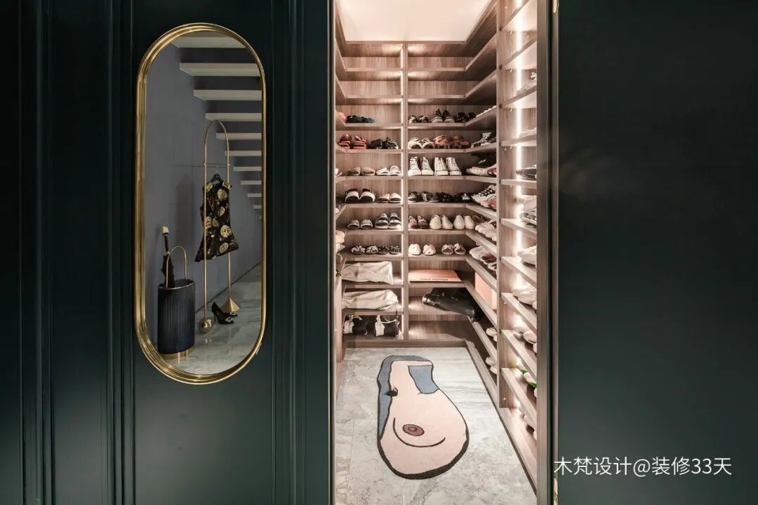▲ 鞋帽间,柜体开放式设计拿取方便,内部嵌入灯带看上去整洁高级