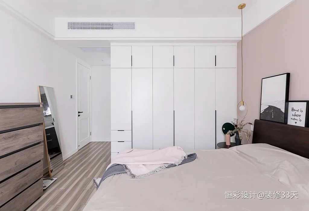 ▲ 大面积柜体搭配落地镜,可以充当衣帽间的功能