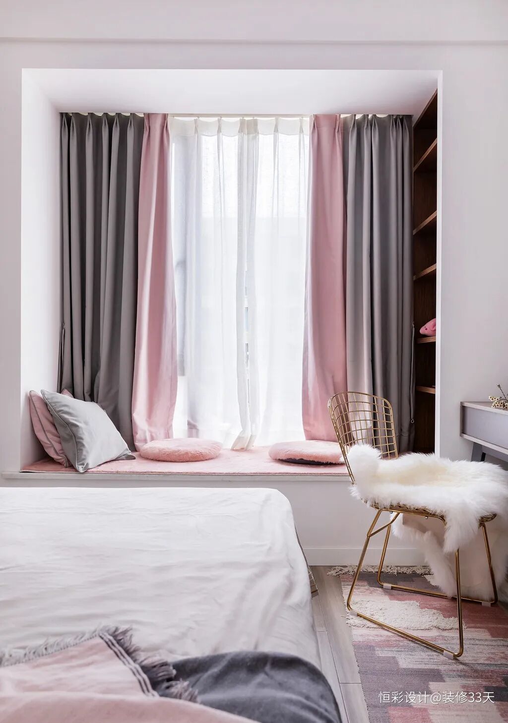 ▲ 粉色系飘窗成为卧室休憩一角