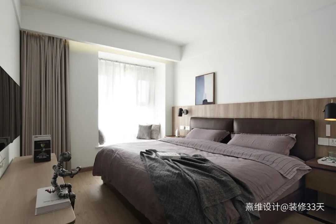 ▲ 主卧,色彩搭配与家具造型以现代简约为基础,清新而柔和的色彩,舒适而具有腔调感的家具及装饰品,色彩与材质的搭配尤为重要