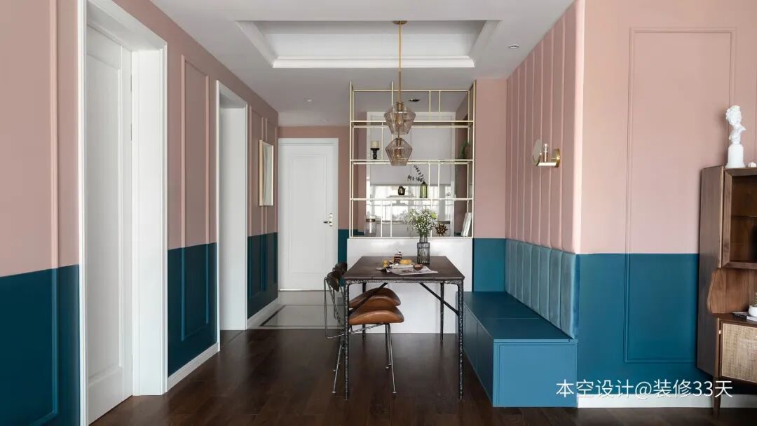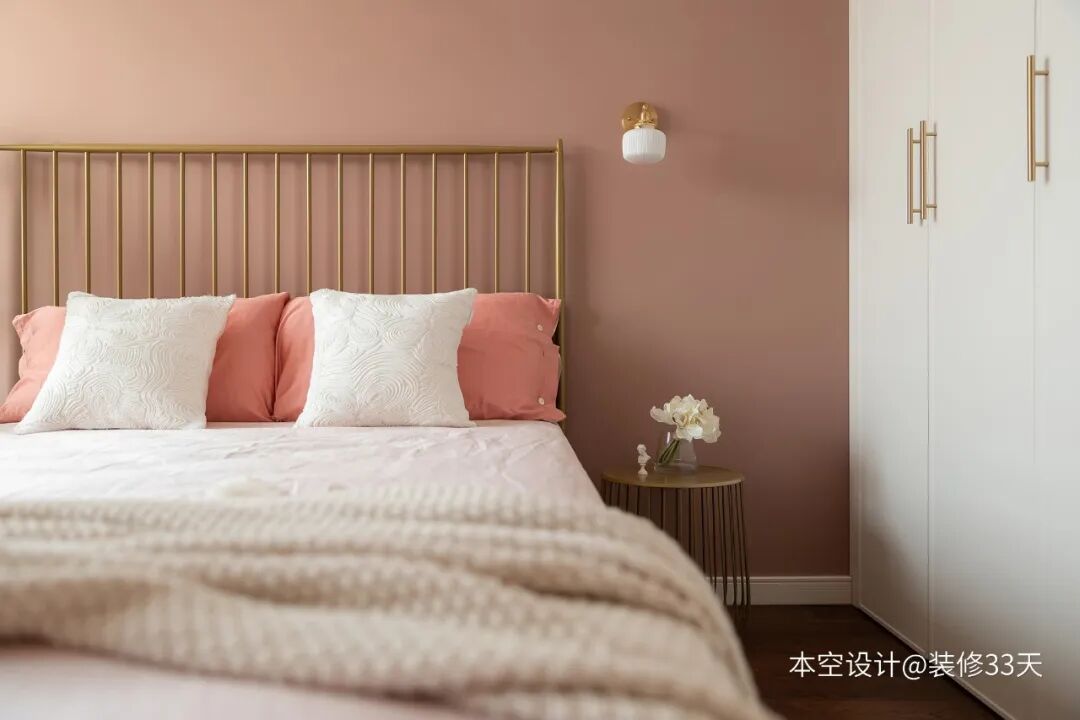 ▲ 儿童房墙面与客厅的脏粉色里外形成呼应,用黄铜元素来提升空间的质感,在北欧的简约里注入轻奢气息