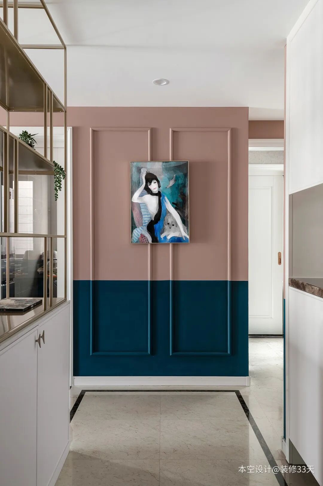 ▲ 建筑面积89平,精装改造总价25万,入户处没有专门的玄关,以分色墙面与装饰画修饰端景,沿过道两边放置鞋柜,用来做日常换鞋收纳,同时将玄关与其他区域分开