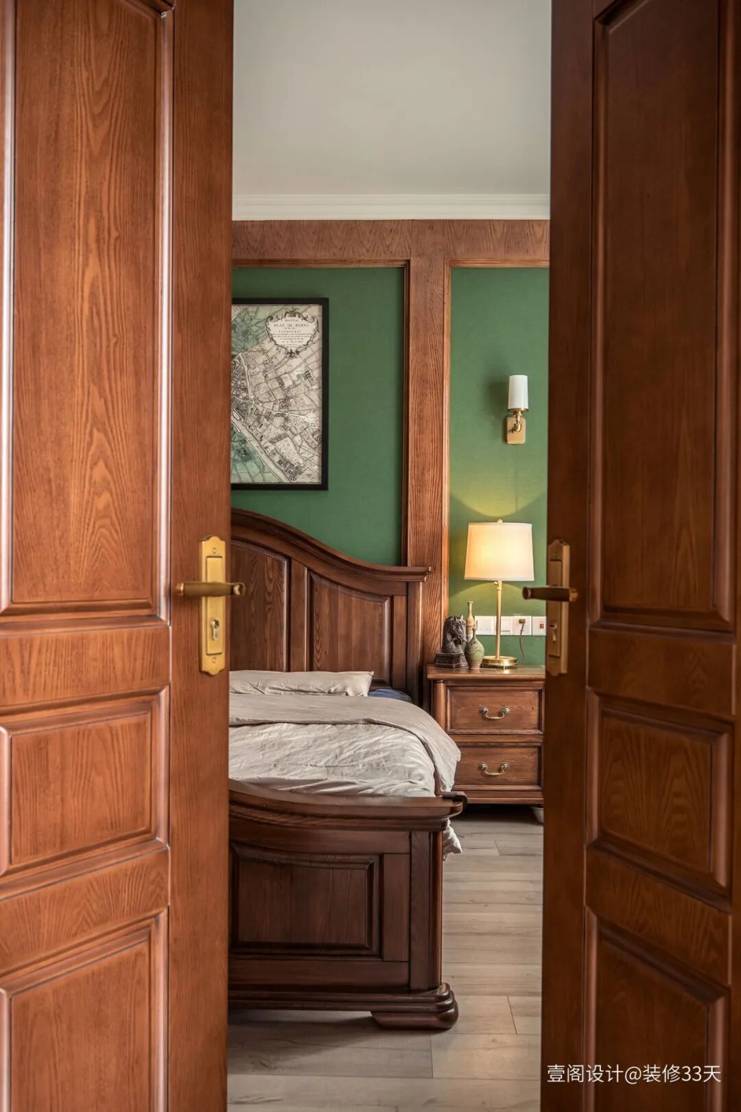 ▲ 绿色的床头墙面与装饰画以及小摆件形成主色调的彼此呼应