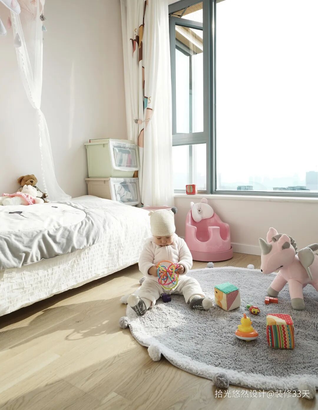 ▲ 宝宝还小跟父母一起睡,所以设计折叠床可以腾出更多的空间作为宝宝玩耍的开阔区域