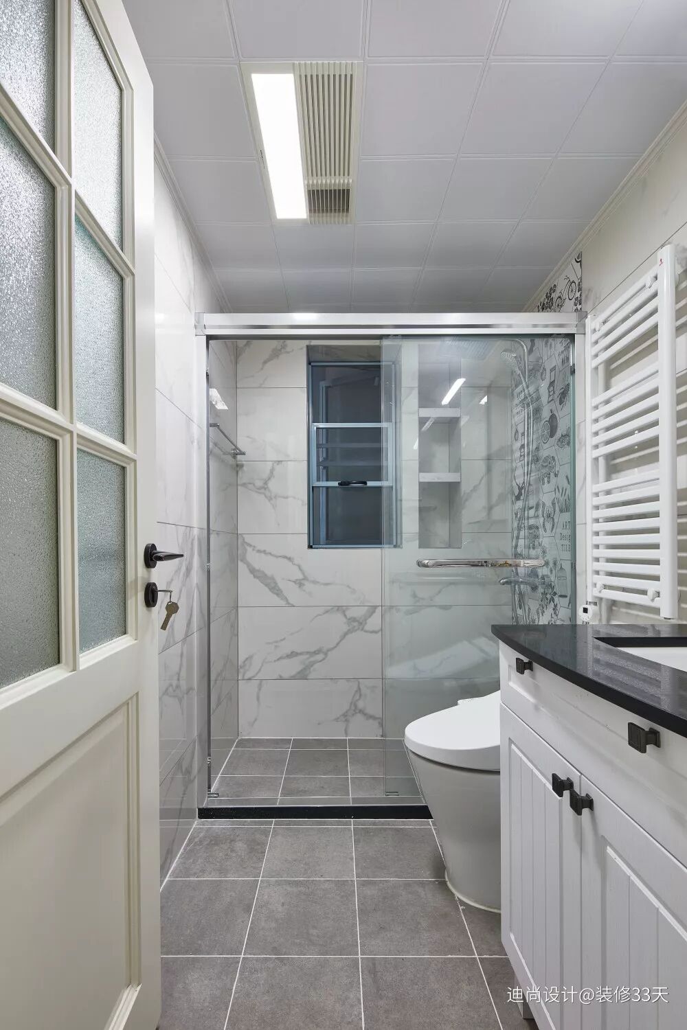 ▲ 客卫,属于采光弱势区,空气流通最弱的地方,设计师避开厨房,利用厨房空间,使次卫实现有窗户的小心愿