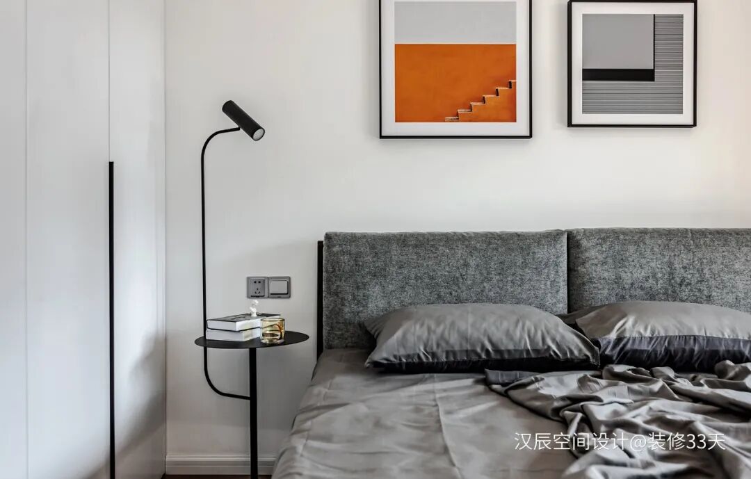 ▲ 次卧是预留给父母常住的,白灰的空间中加入一抹橙色点缀,增添一丝温度