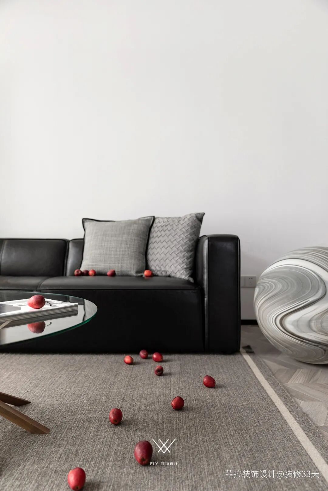 ▲ 黑色皮沙发简约的气质和整个家的格调很搭,茶几是木质和玻璃结合的巧妙造型