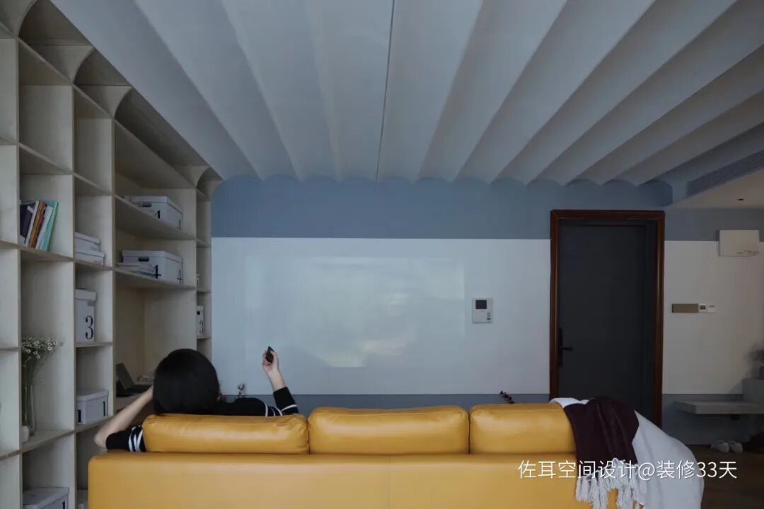 ▲ 灰色+留白的墙体巧妙的成为投影幕布