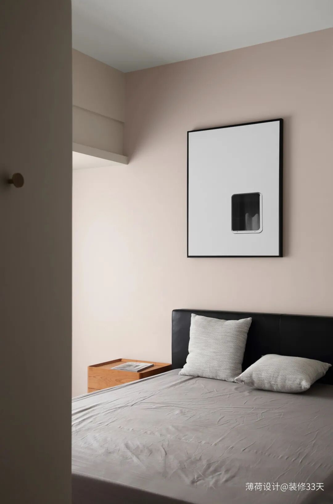 ▲ 次卧主要是父母居住,简单素雅,以莫兰迪色系的乳胶漆刷漆,搭配简洁的装饰画点缀