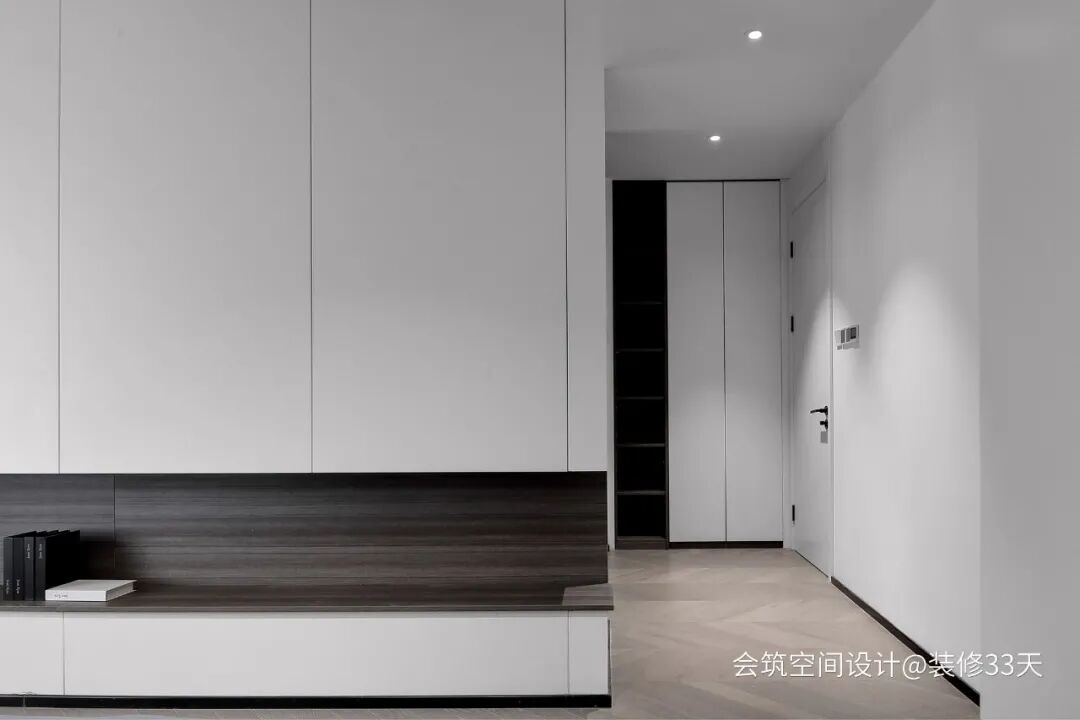 ▲ 卫生间位于左侧白色护墙后面,隐形门的设计保证了空间立面完整性