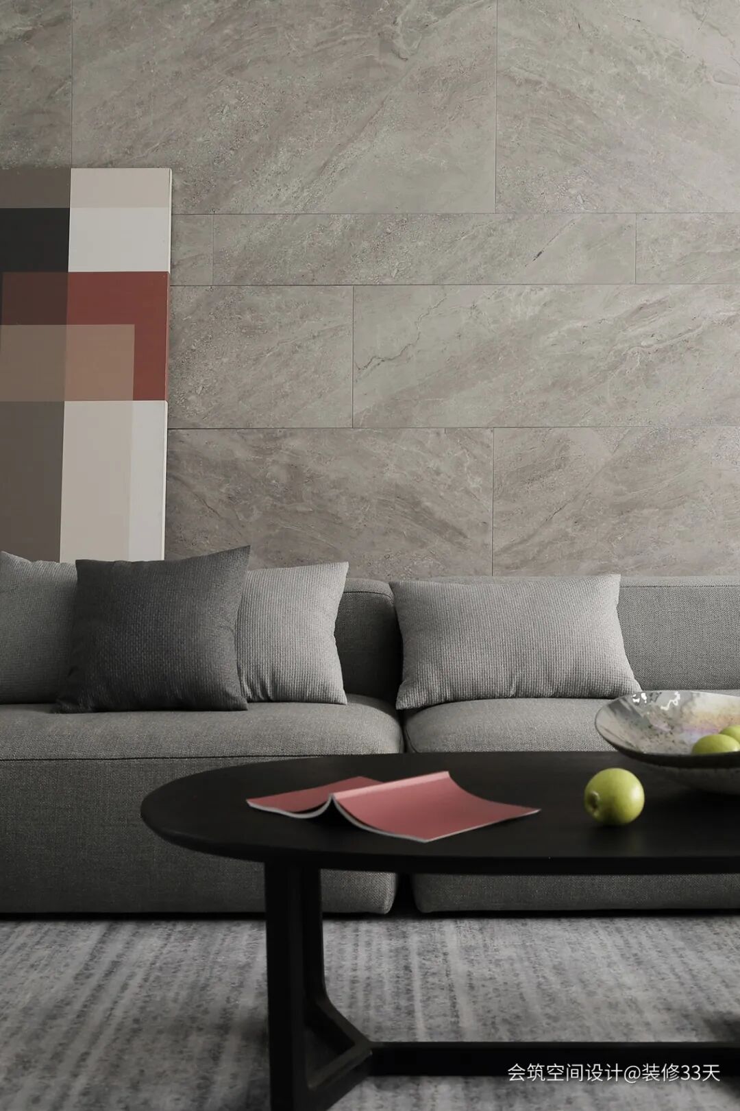 ▲ 沙发背景墙的硬朗搭配锐驰布艺沙发的柔软,一硬一柔间凸显现代简约风格的刚柔之美