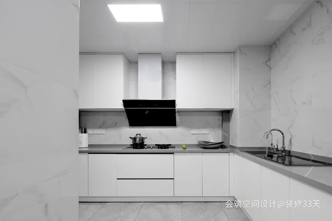 ▲ 厨房L型布局,动线流畅,整体延续了灰白色调,倍感清爽