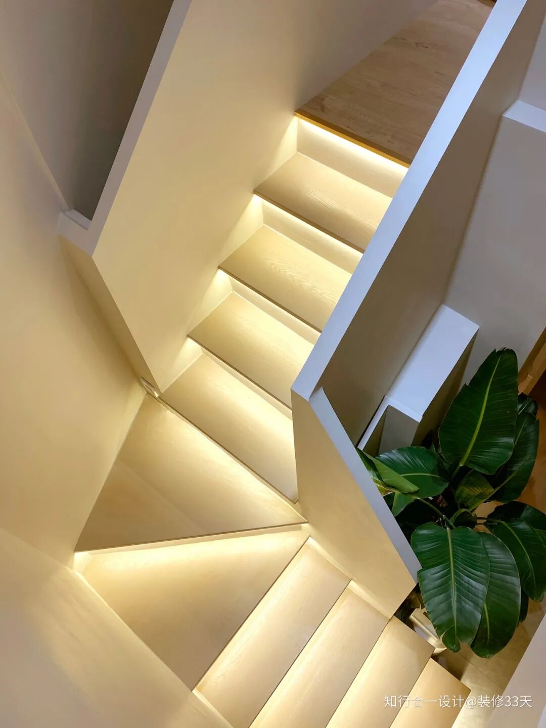 良好的灯光设计是给楼梯加分的,如果给每个踏步加上隐藏光源的话,会让整个楼梯显得更加轻盈,颜值大增。