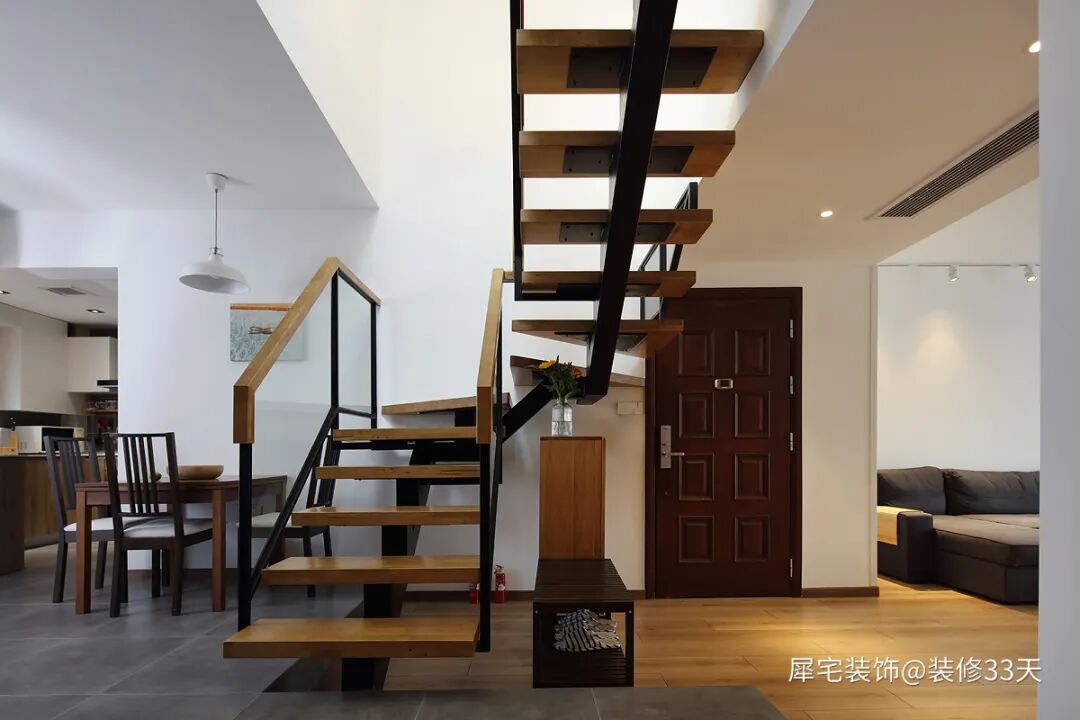 不锈钢踏步的优点是轻盈,价格不贵,缺点是走的时候噪音会比较大,一般用在Loft户型比较多。