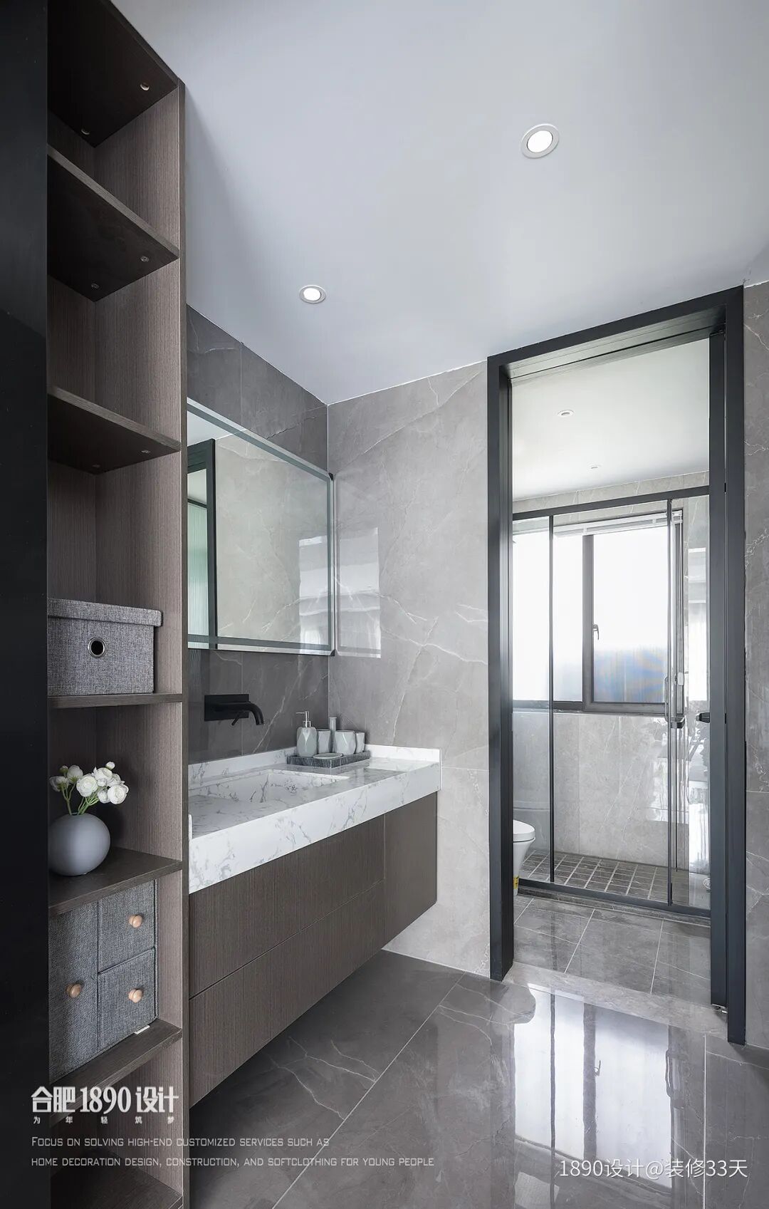 ▲ 卫生间干湿分区,台盆柜左侧定制一列开放格补充收纳