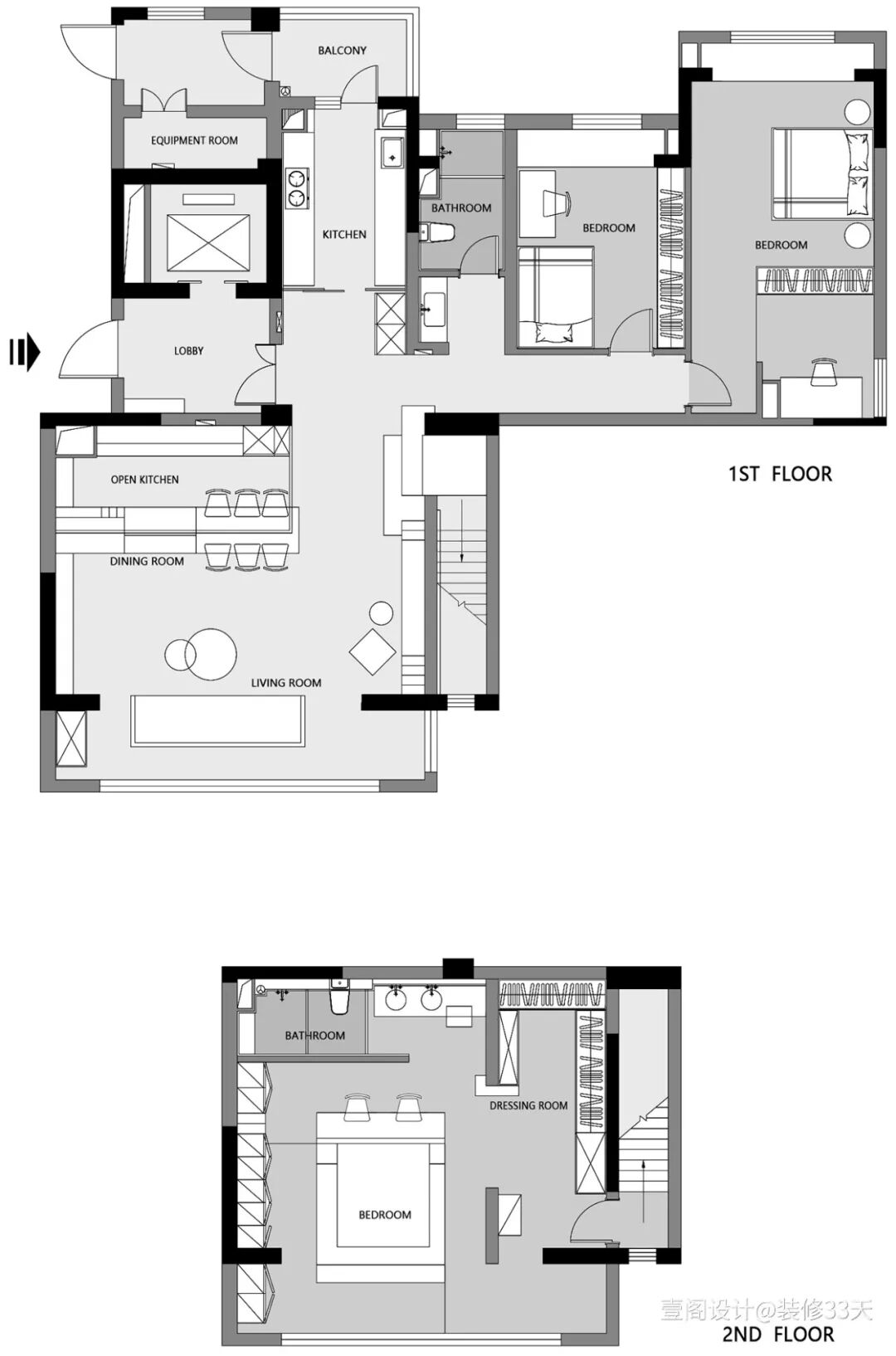 ▲ 儿童房,温润的木质元素搭配低饱和度的灰色,结合两盏氛围吊灯点缀,温馨惬意