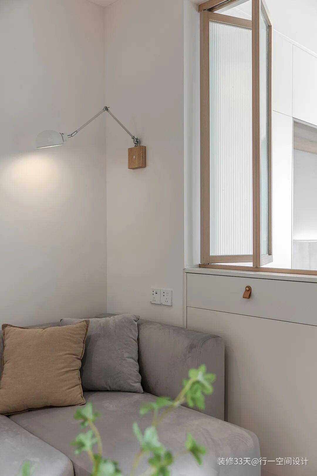 ▲ 与主卧的隔墙开了一个室内窗洞,设置长虹玻璃透光不透影,厨房门做成内嵌移门和转角的玻璃隔断,大大增进客厅采光与通风