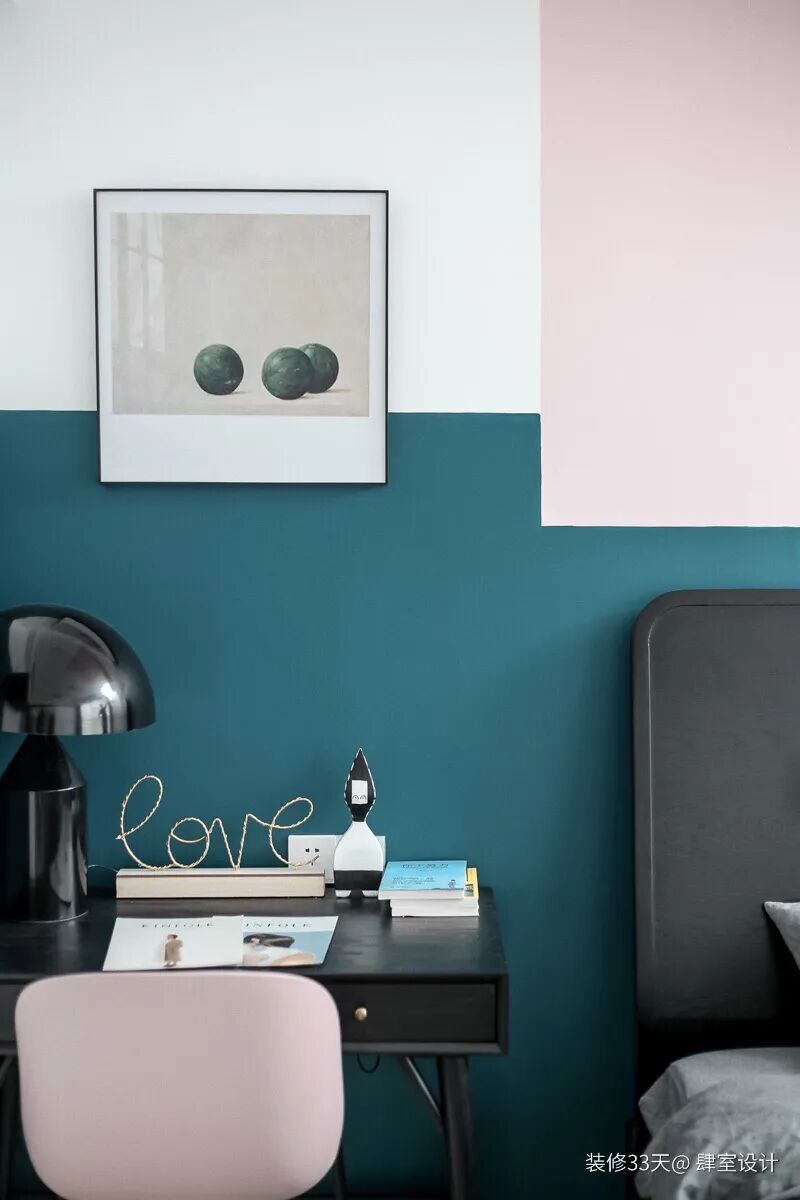 ▲ 蓝绿色与脏粉色彼此之间碰撞延伸,搭配恰到好处