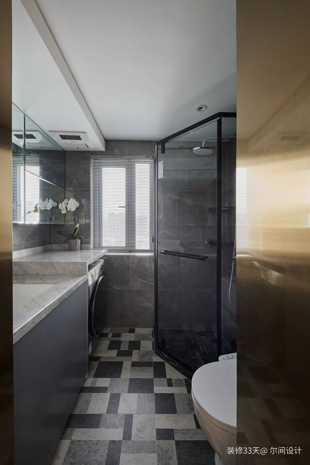 ▲ 客卫,错落台盆柜预留出洗衣机位置,加长镜柜增加收纳