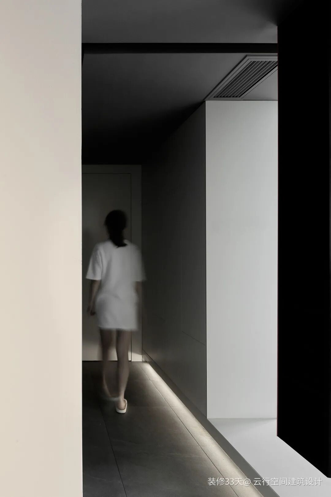 ▲ 过道这边都做了嵌入式柜体,地台因为暗藏灯带,多一份漂浮感