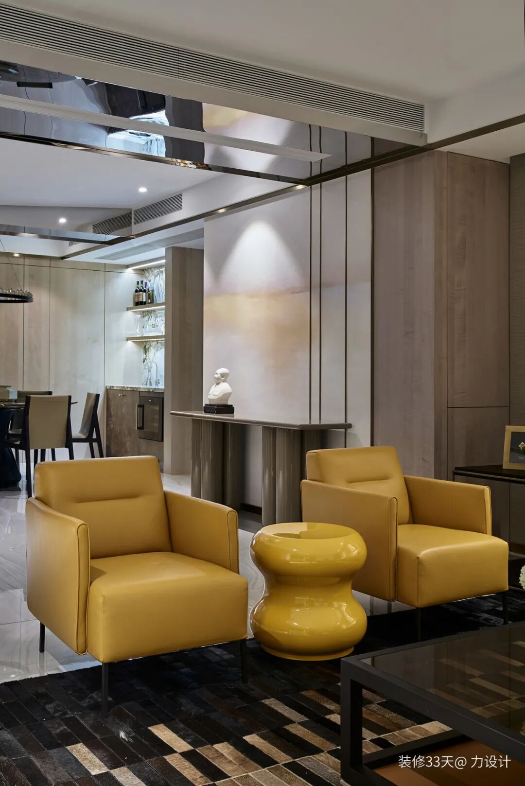 ▲ 亮黄色单人沙发与造型边几提亮空间