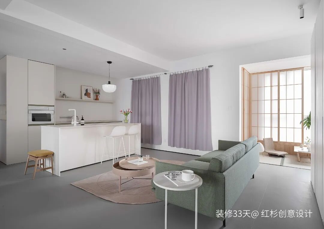 ▲ 大面积留白处理更显通透明亮,沙发背景做了整面储物柜,保持空间干净整洁