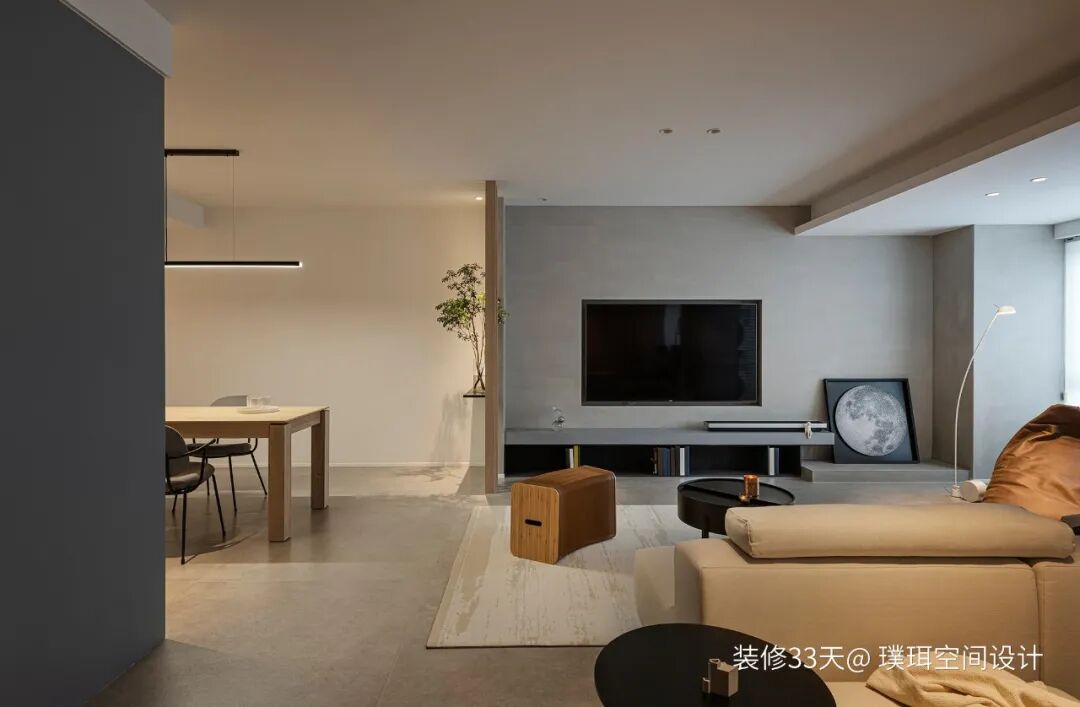 ▲ 灰色电视墙静谧而高级,渲染整体风格的硬朗与质感