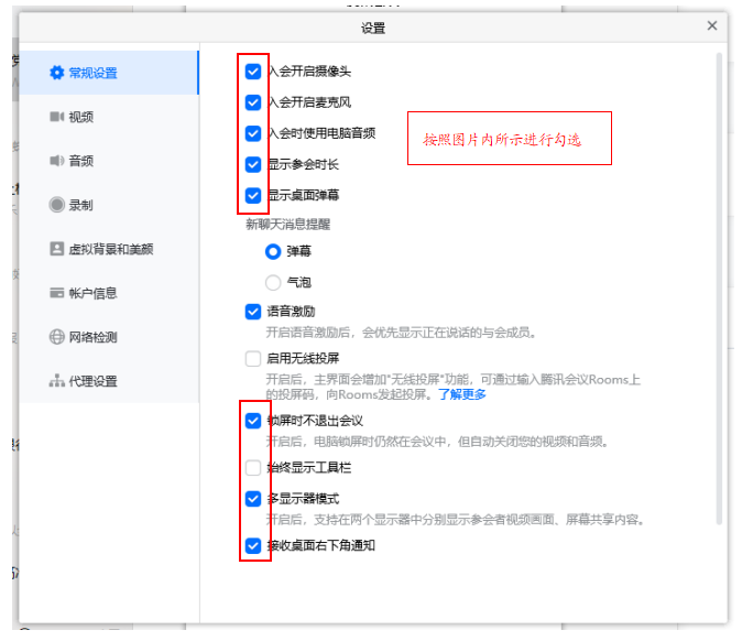 ①项目代表由主持人邀请进入房间后,需确认“同时共享电脑声音”选项是否勾选(“人像画中画”可根据实际情况勾选)。