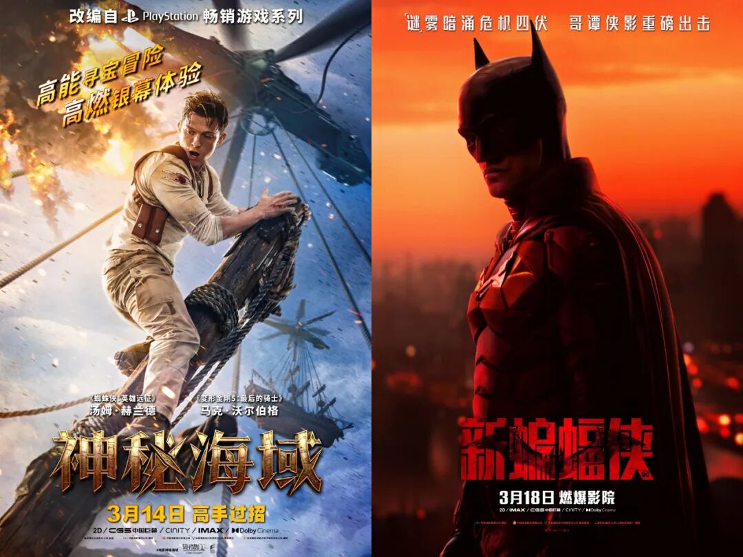 这时候,影院经理都在翘首期盼着新片的上映,于是两部进口片《神秘海域》和《新蝙蝠侠》就被寄予了厚望。前者是由十余年历史的游戏大作改编而来,后者则更是绵延几十年的经典IP了。