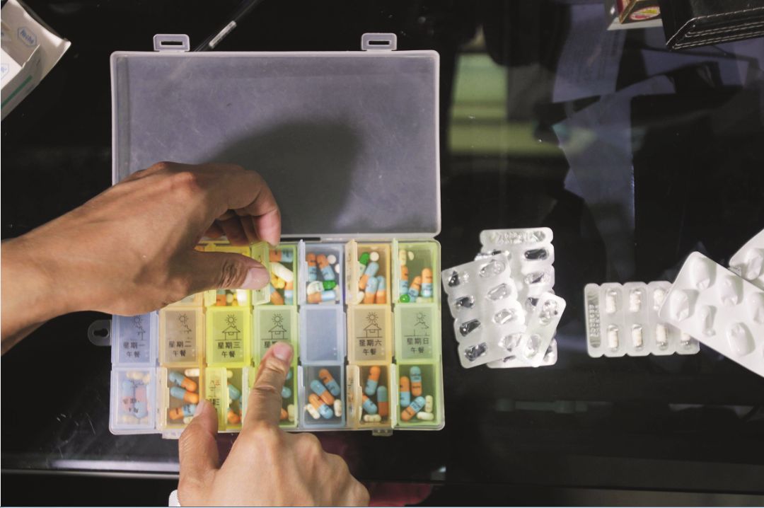一年来,她每天按先后顺序总共要吃下41颗药。由于大量服药,出现了胃疼、关节痛、精神消沉、腹泻等一系列副作用。在这个令人眼花缭乱的服药方案中,有两种在WHO指南中从未出现的药物:用于保肝的水飞蓟宾胶囊与护肾的中成药至灵胶囊。每天,她需要分别吃6颗水飞蓟宾和9颗至灵胶囊。