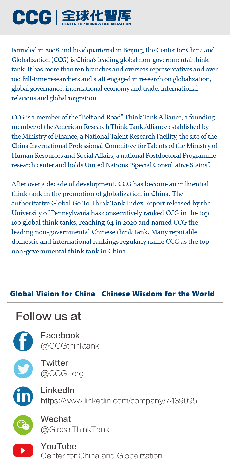 CCG ranked among world’s top 80 think tanks