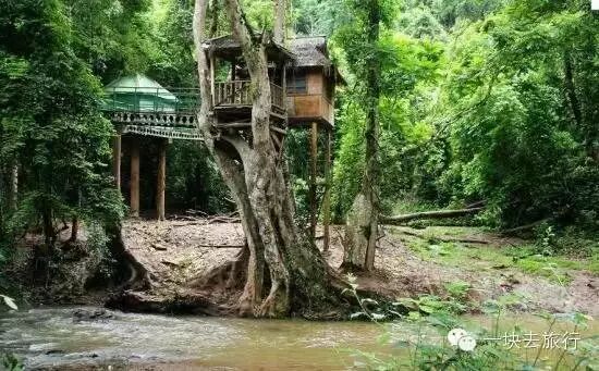古人云:“宁可食无肉,不可居无竹”,在版纳,令人心动的还有那成片的竹林以及掩影在竹林中的一座座美丽别致的竹楼,美丽的景致让人恍然如在梦中。一棵一棵高耸入天的大树,巨大的树冠,浓荫四佈、遮天蔽日,像一把一把的大伞,树屋就盖在这些粗大的树干上“树上旅馆”里,好像是森林的卫士,聆听着哗哗溪流进入梦乡……