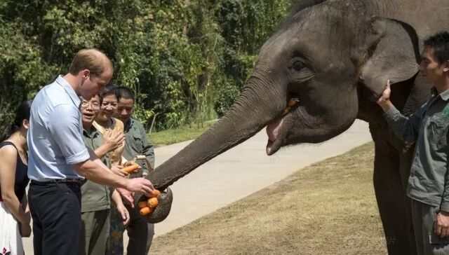 2015年3月4日,英国威廉王子造访了西双版纳,并在亚洲象种繁育基地给大象喂食。
