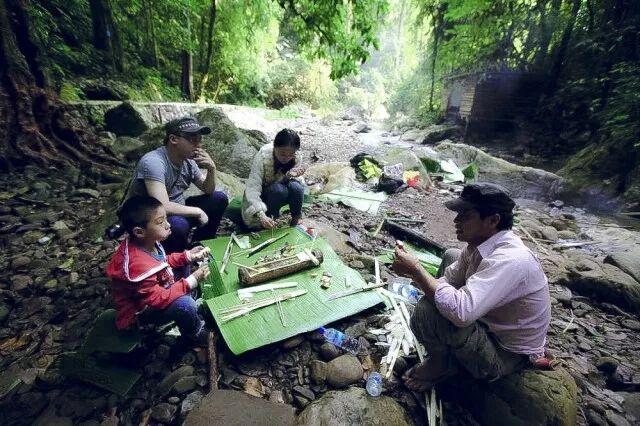 在雨林里做饭,一切都取自天然。利用雨林里的竹子、柊叶等来烹调同样采摘与热带雨林里的食材进行烹调,用硕大的芭蕉叶做桌子,在潺潺的溪流边,伴随着鸟语花香来上一餐原始的丛林大餐,大饱口福。