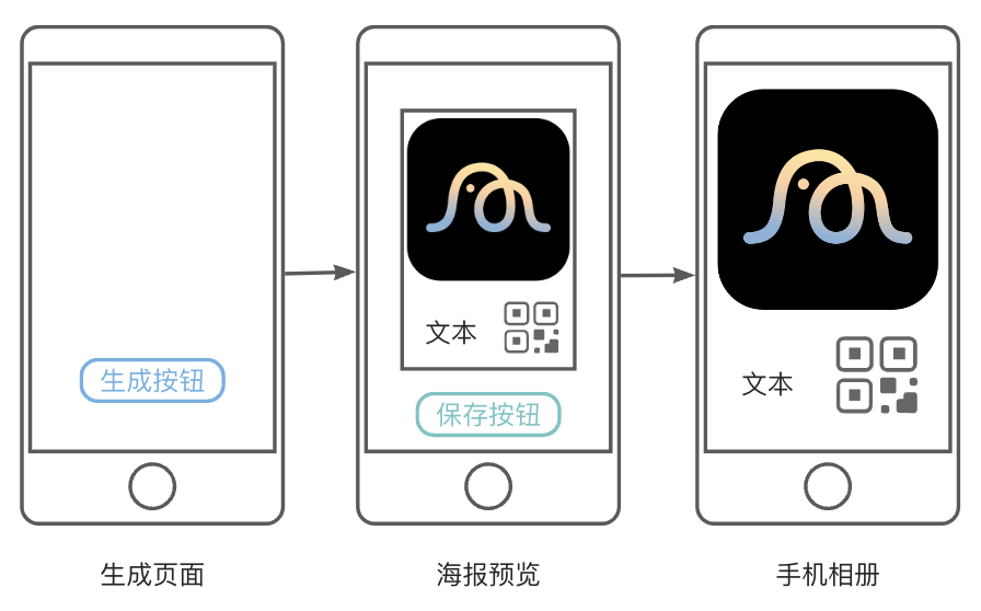 在用户视角,海报生成像是“截图”,点击生成海报按钮之后,定制化海报便会呈现在屏幕上,再点击保存按钮,海报便会保存在手机相册里。