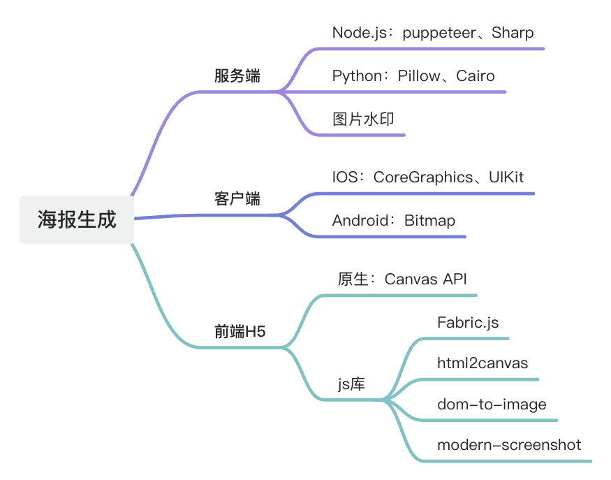 前端的实现方案除使用Canvas API纯手写外,还有三类可参考的js库。Canvas API较为底层,上手成本高,海报生成需求真正用此实现的极少,下文一笔带过,重点展开讲一下现有的js库。