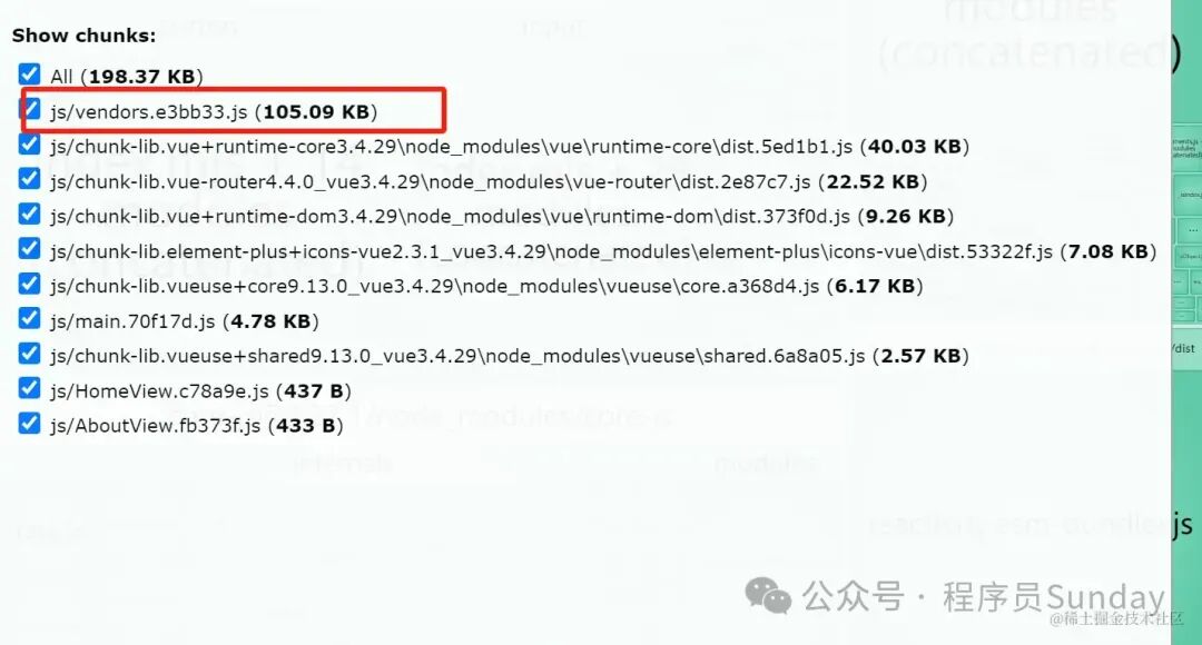 最后我们再来进行优化,将vendors模块中的 element-plus 拆分出来: