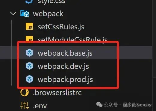 在目录下新建一个 webpack 的文件夹,在里面新建一个 base-webpack 配置以及分别用于构建开发环境以及生产环境的配置文件: